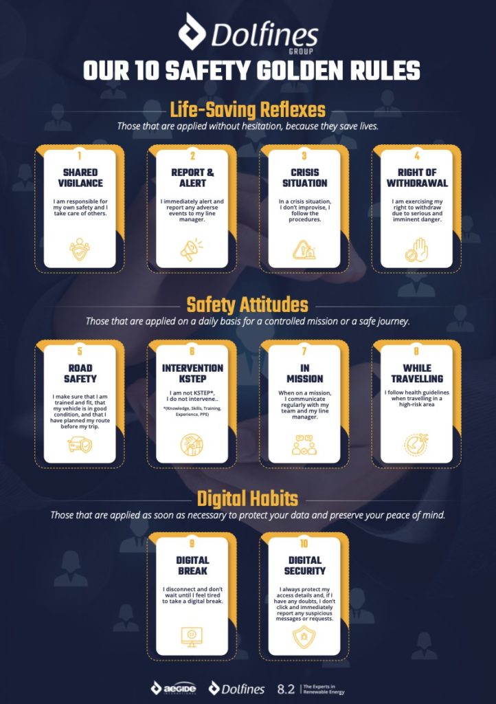 Chez Aegide International, nous comprenons que les règles d’or de sécurité au travail constituent le dernier rempart pour rappeler au personnel les règles qui sauvent et ainsi prévenir les accidents et incidents. (source : Aegide International – Services QHSE haut de gamme)